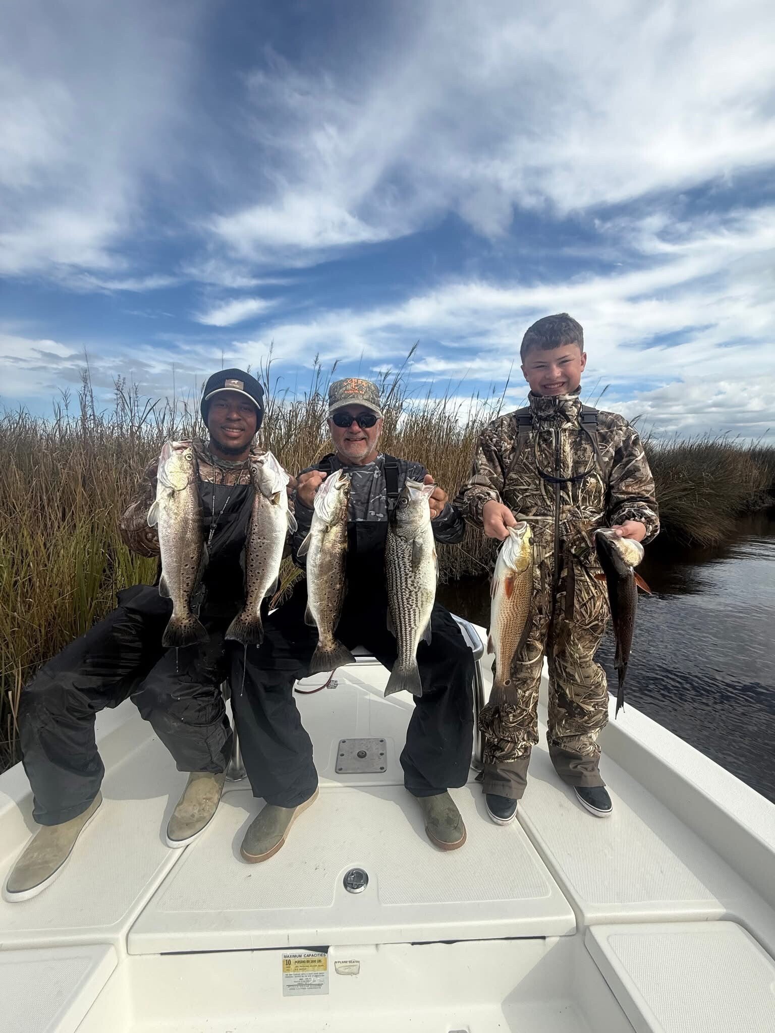 Welcome to Inshore Charters with Captain John Que Thomas, proudly based in the pristine waters of St. Marys, Georgia. Captain John Que, a true local, brings over 20 years of inshore fishing experience to every trip. Operating a well-equipped 25’ bay boat, he combines deep local knowledge with a passion for creating unforgettable on-the-water experiences. Whether your goal is to fill a cooler with keeper fish, battle trophy-sized catches, or simply relax and enjoy a scenic sunset cruise, you’re in the right hands. Each trip is tailored to deliver both excitement and lasting memories.