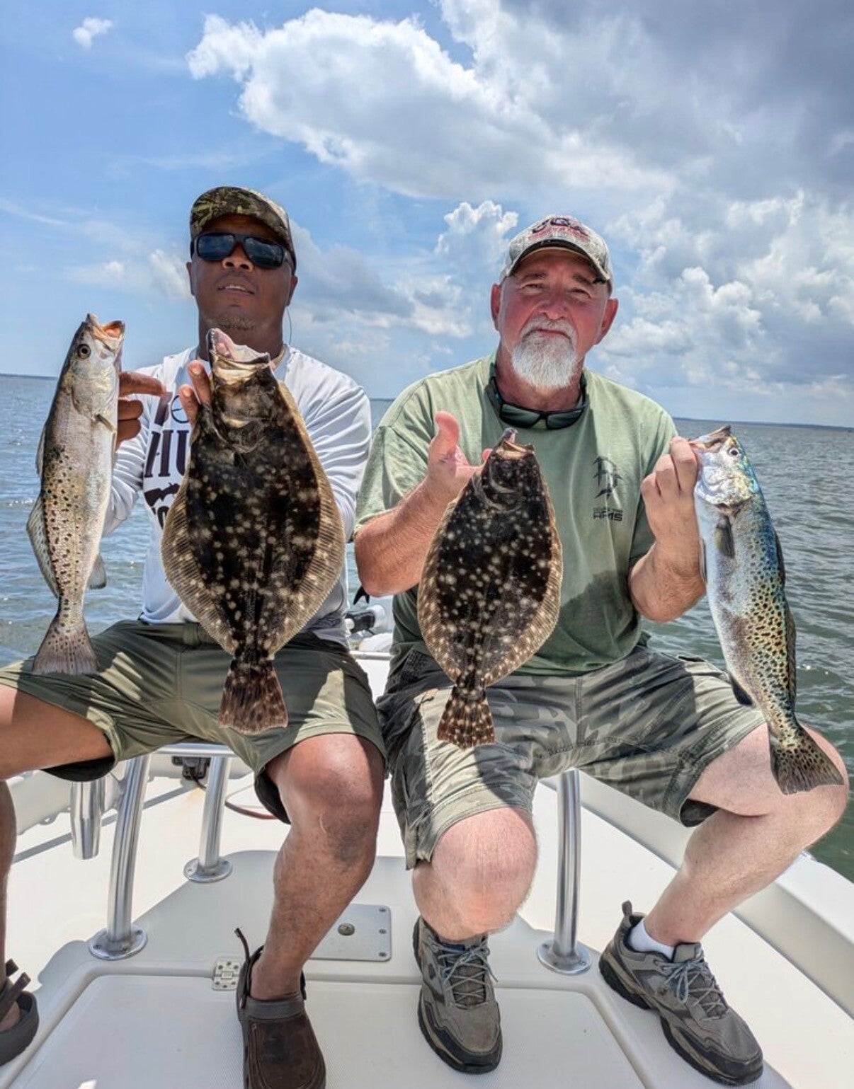 Witness the excitement! Our gallery is filled with photos of impressive catches – from trophy-sized redfish and trout to bountiful coolers. Captain John Que's 20 years of local expertise mean you’re always in the best spots for reeling in the big ones. Get ready to create your own fish tale!